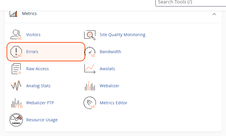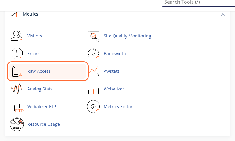 You can also find these tools quickly by using the search bar at the top of cPanel. Type errors or raw access and click the matching result.